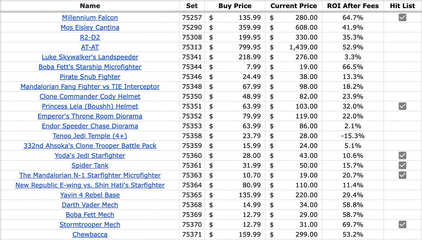 I was extremely vocal about the Millennium Falcon (which was actually buyable at $100 from Walmart during BF, me listing a $136 cost basis is being generous here).