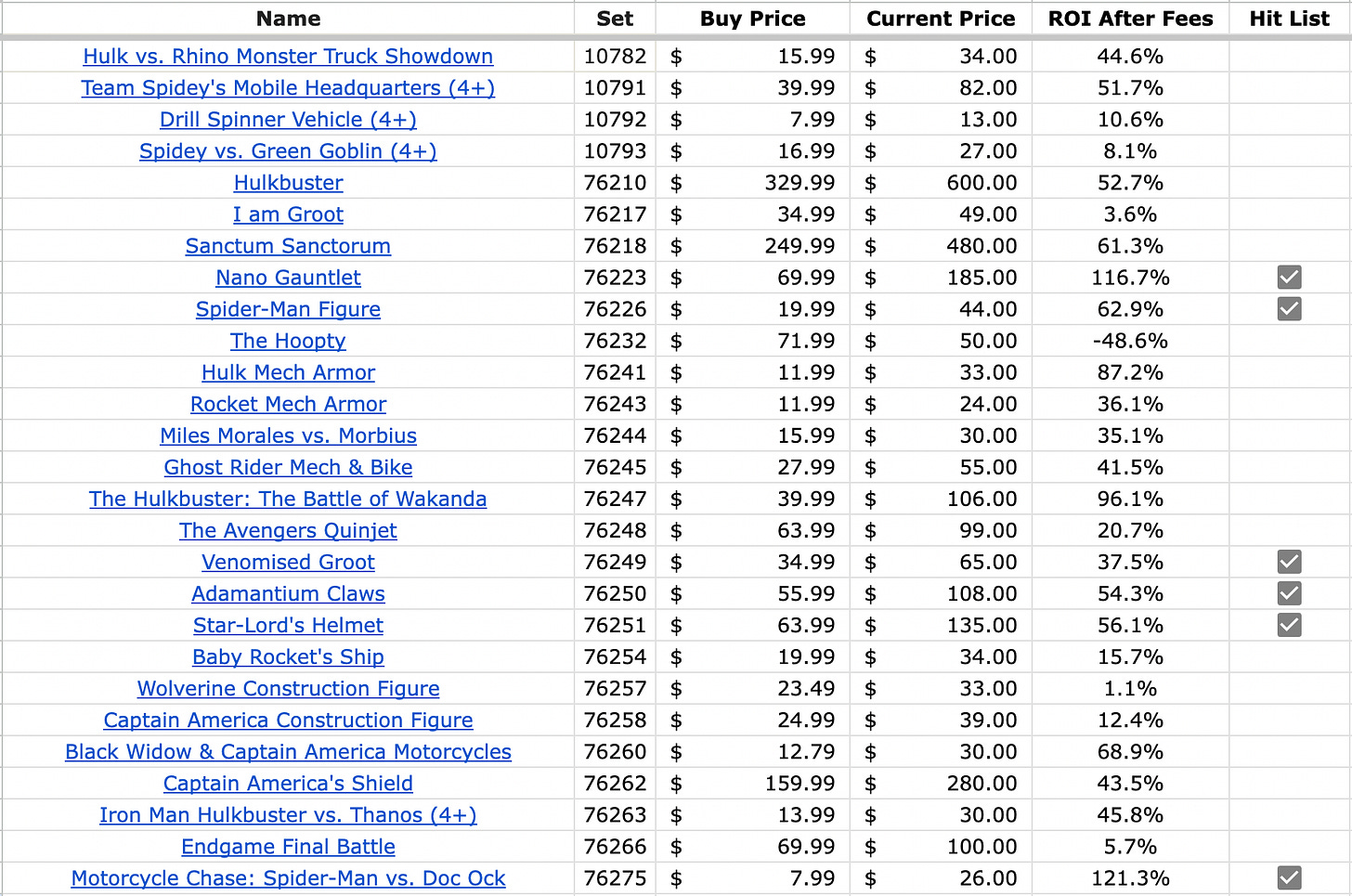 Paid subscribers will remember that I was terrified of buying this many Marvel sets because of how many 2023 retirees (that I didn’t buy) shit the bed, but it all worked out.