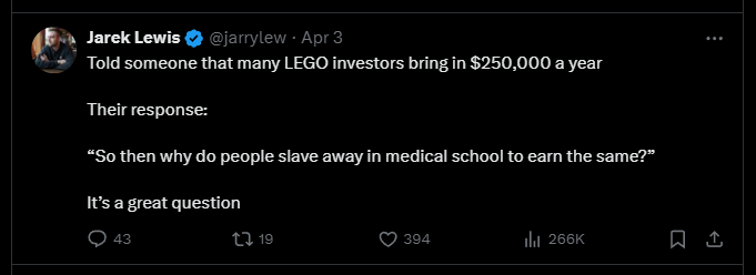 Hi Jarek. Have you noticed if there is a correlation between more subs and lower profit for the Lego sets? I’m curious if more people listing certain Lego sets you mention might be a drag on price.